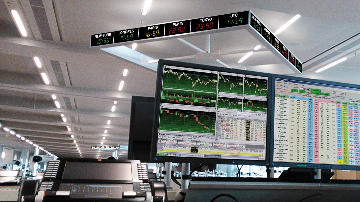 高基时间品牌多时区同步时钟被广泛应用于证券交易大厅、视频会议室、危机处理办公室、接待大厅、机场、学校、产业园区、装饰背景等领域。多时区授时时钟可根据客户需求进行开发和客制化生产。客户可根据需求分时区任意设置时钟显示。